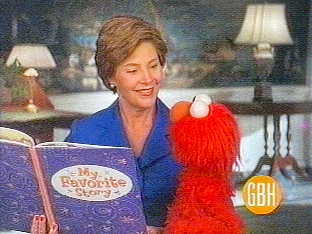 2003 | Laura Bush talks to Elmo about the importance of reading. |