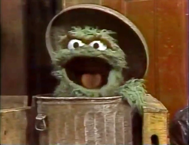 1973 | Oscar doesn't want to hear anything about the new season of Sesame Street, so he puts on his noisy radio to avoid the local announcer. |