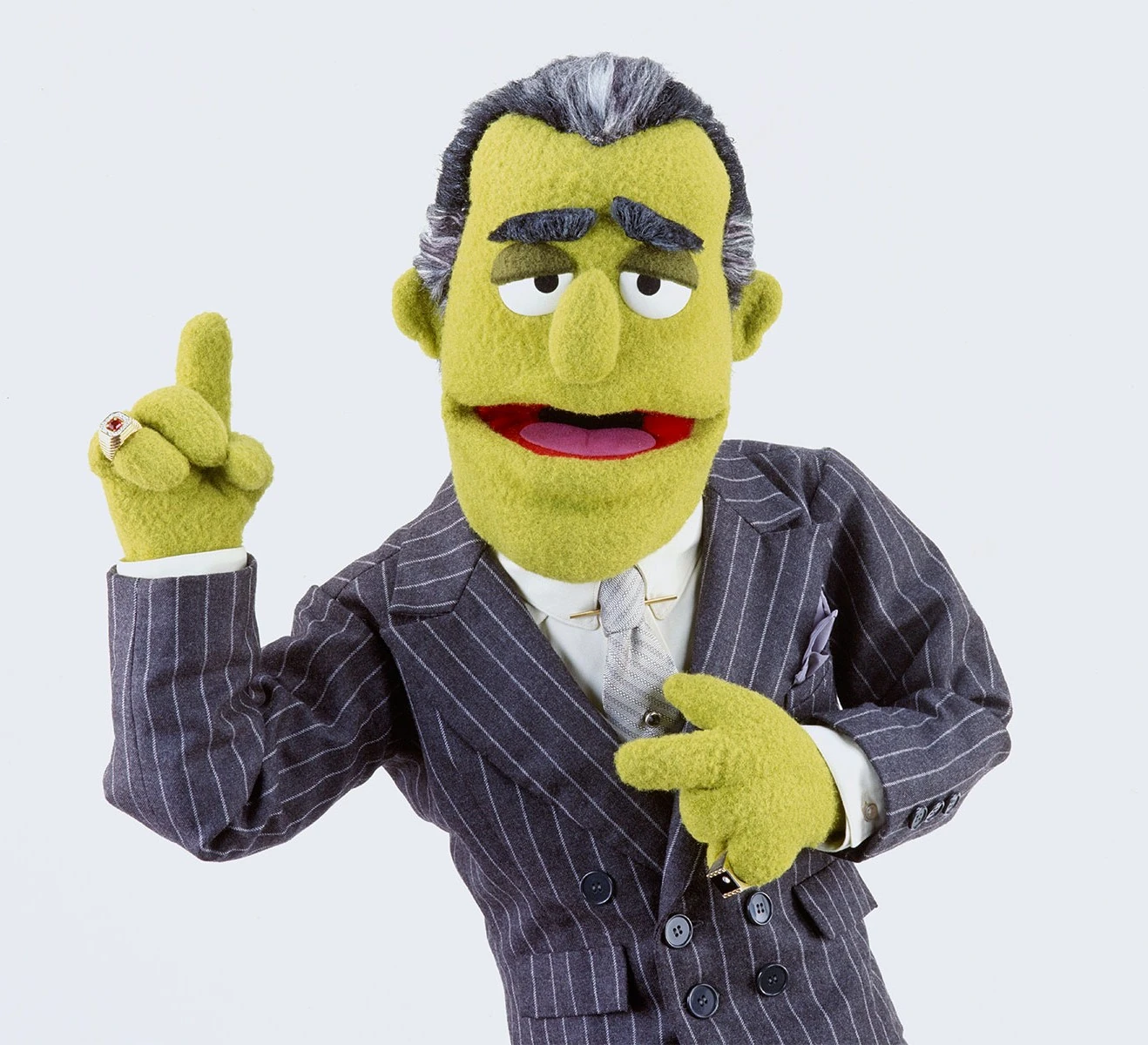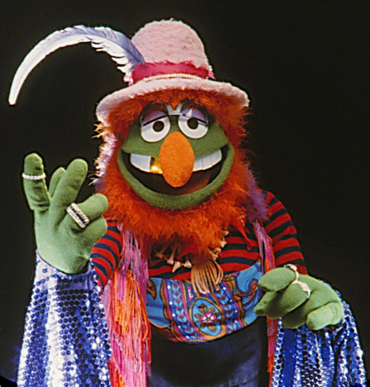 Many of the same colors recur on multiple different characters. This establishes a palette for a show, helping the characters look like they belong together. On Sesame Street, Abby Cadabby's eyes are the same shade of blue as Cookie Monster's fur, and Ernie's nose is the same shade of red as Elmo's fur. On The Muppet Show, Dr. Teeth has the same skin tone as Kermit the Frog, Beaker's hair is the same shade as Floyd Pepper's nose, and Fozzie Bear's hat and eyebrows are the same color as Rizzo the Rat's fur.