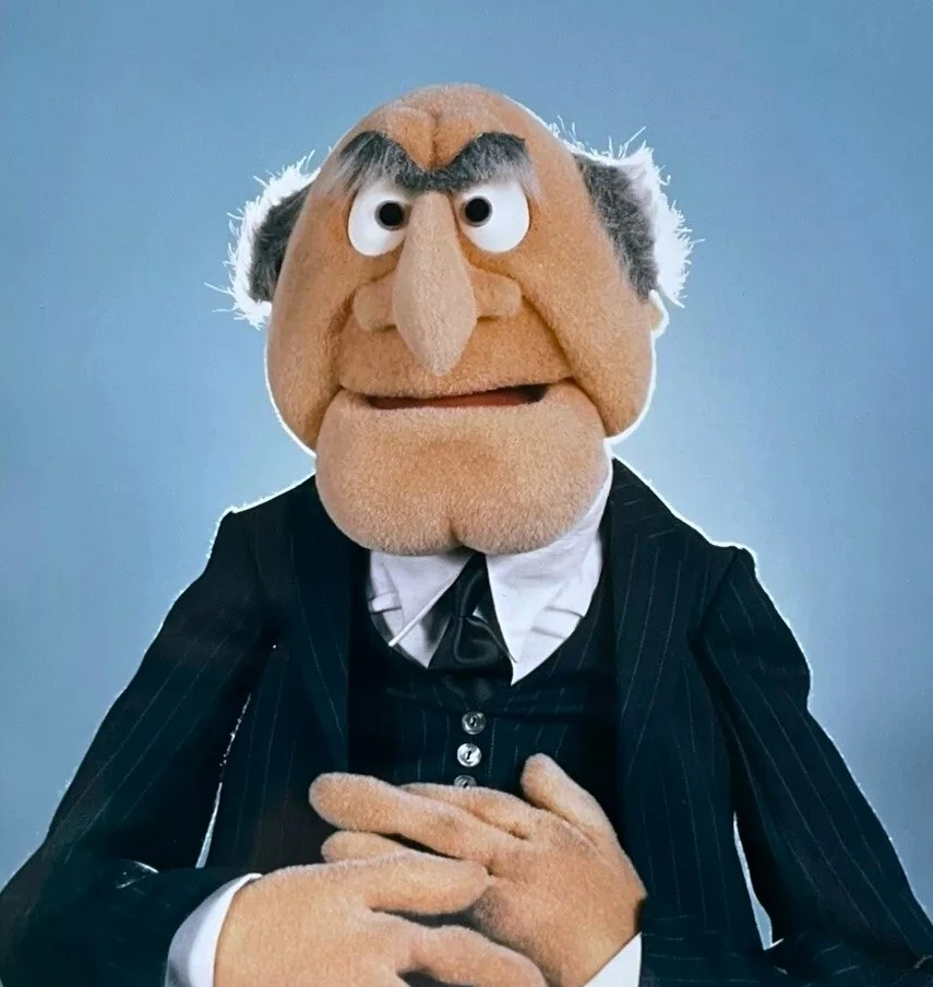 A color chart from the 1970s with Muppet fabric samples, denoting early specific Pantone colors of various characters.