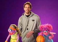 Gasol appears with Abby Cadabby to present "coach" as the Word of the Day during season 45 of Sesame Street.