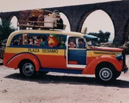 The 1995 era introduced a new opening that combined live-action sequences with animation (produced by Oscar González Loyo), and uses a road trip/school field trip motif. The theme song and the motif from this era has been used ever since (albeit with modifications). The opening sequence starts with Abelardo and an animated butterfly, as the butterfly exits the screen, it then zooms out to show the Plaza Sesamo bus. Abelardo, Pancho, and Lola and the kids (including a young Dulce María), also an animated pig are then seen riding the bus through Mexico. The bus then drives through a rainbow-like portal, which completely animates everyone and everything, and transitions to an animated world. There were three different versions of the title card animation at the end of the opening. In the original 1995 version, as the animated kids and Muppets get out of the bus, Abelardo is the last to enter the gates of Plaza Sesamo as the logo comes into view and the background fades into yellow. The 1997 version features Pancho planting a seed, while Lola waters it, with Abelardo painting the background. The seed sprouts, revealing the then-new Plaza Sesamo logo. Starting in 1998, Pancho, Lola and Abelardo presumably (due to the opening song being shortened between 1998 and 2000, not much is known) drew a triangle, the number 4, and the letter L respectively, then the sign appears (without letters), then the L shoots onto the sign, causing the rest of the letters to appear, in which it zooms into the screen.