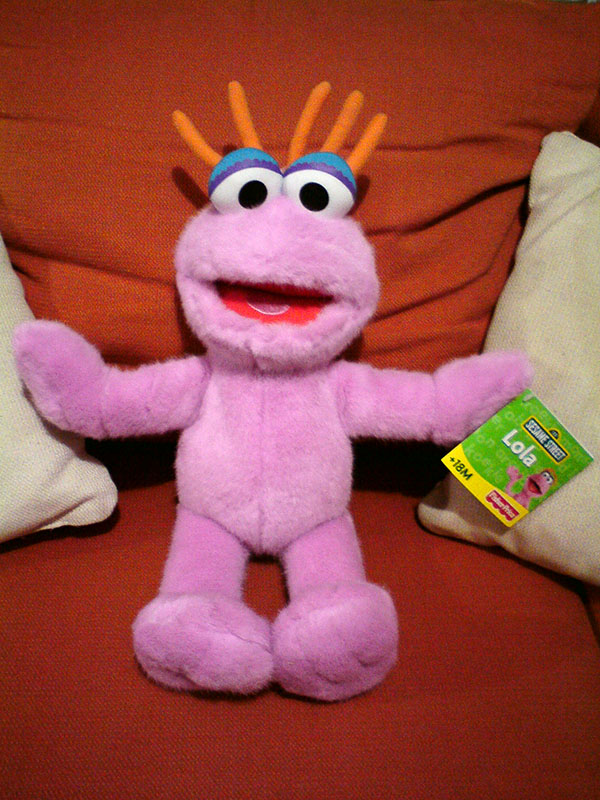 Fisher-Price produced a plush toy of Lola from Plaza Sésamo in 2008. It is about 18 inches tall.