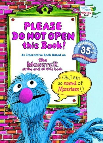 Please Do Not Open this Book! is an interactive 2006 Sesame Street book based on The Monster at the End of This Book. The illustrations and text come from the 1971 book, but moving parts and flaps have been added.