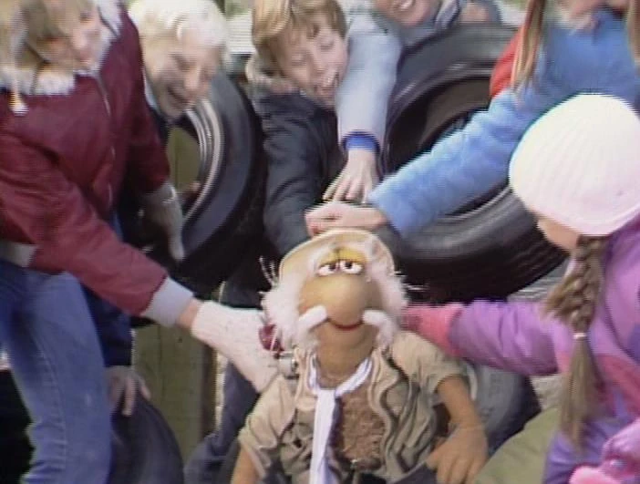 Episode 101: Beginnings | Matt's first postcard simply tells Gobo that he is "fine," while he actually discovers Doc's shop, is confronted by a ferocious hairy beast and discovers humans and cars. He thinks a fire hydrant is "an unfriendly yellow fellow" and that five children with sports equipment are an army with weapons. Note: The exteriors were shot in front of 54A Scollard Street, Toronto, across the street from VTR Productions, where the show was taped. One of the children seen is Jonathan Frith,[1] son of puppet designer Michael K. Frith. | |