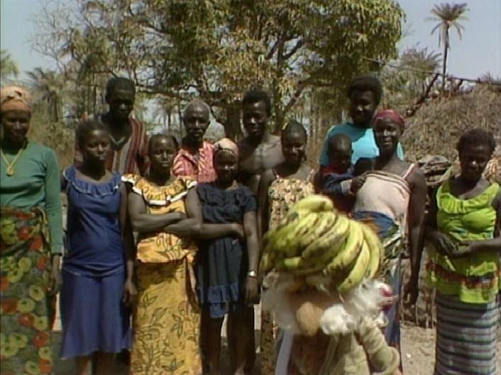 Zambia | Traveling Matt visits an African market. He sees the local Silly Creatures carrying fruit on their heads and thinks these are hats. However, when he tries putting a bunch of bananas on his head, he finds he can't support the weight. Note: This postcard also appeared as a Second Season DVD bonus, and on The Jim Henson Company's YouTube channel. | |