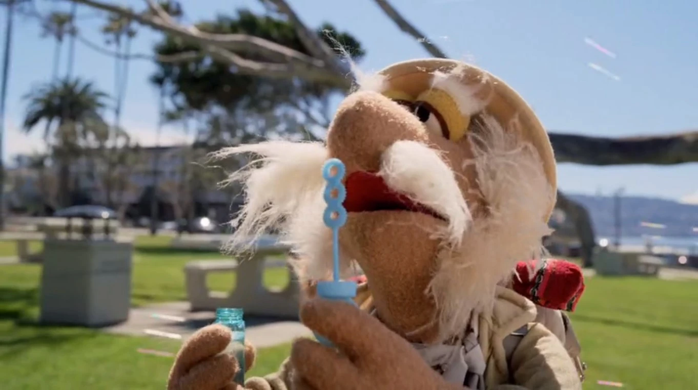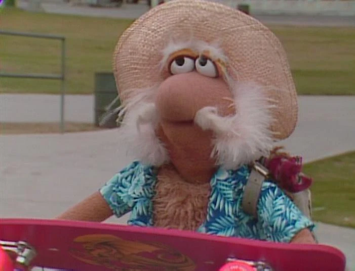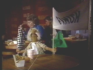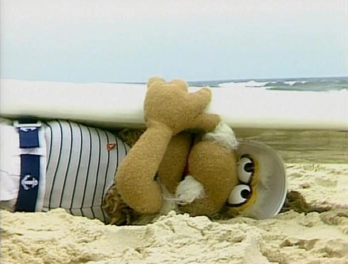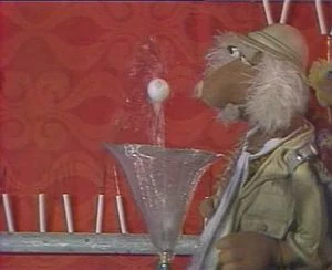 Episode 109: The Lost Treasure of the Fraggles | Matt visits a carnival-style ball toss establishment; successfully knocking over the cans, he wins a small metal statuette. Braced by his good fortune, he heads to an outdoor café, where a set of cans are displayed on the counter. Presented with a bit of food, Matt naturally assumes it's another missile, and again hits the mark. The proprietor, incensed, gestures for Matt to leave, but the latter assumes he's won an even larger park sculpture. Note: This postcard also appeared on The Jim Henson Company's YouTube channel. | |