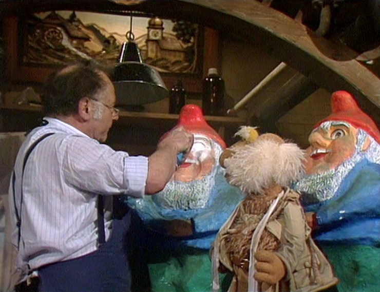 Episode 404: Uncle Matt's Discovery | This adventure is almost identical to the American English version, though it features a different Doc, naturally: As Matt returns to Fraggle Rock he encounters Doc spray-painting primer on a garden gnome and thinks he is face-erasing. Note: This adventure was not shared via a postcard. | |