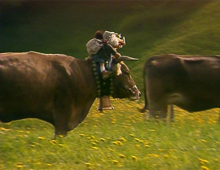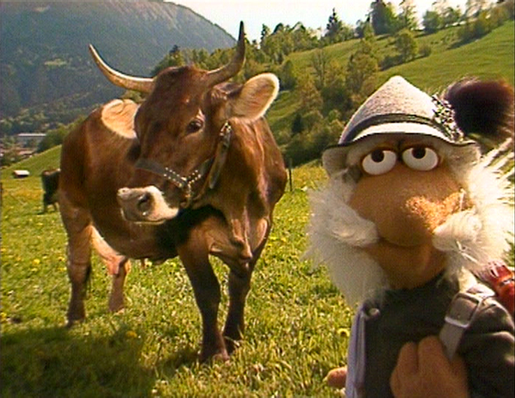 Episode 306: Pebble Pox Blues | Matt befriends a cow named Bessy. Note: A longer version of this postcard originally appeared on the German co-production for "The Minstrels." The remaining scenes were later featured in a short video on The Jim Henson Company's YouTube channel, posted in 2009. | |