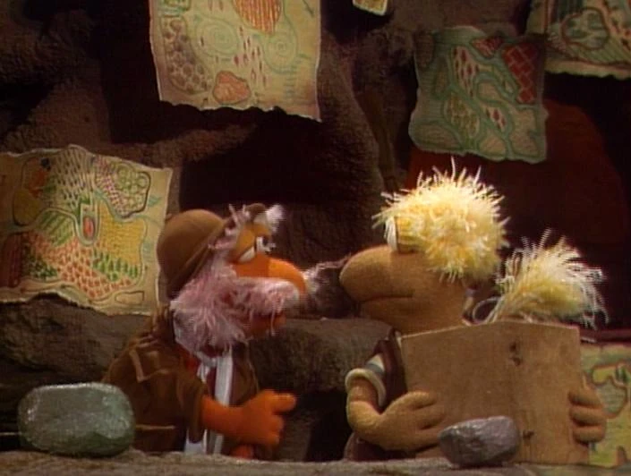 Episode 122: Mokey's Funeral | Matt discovers a magic cold stone (known as an ice cube). Note: This postcard was used on the German co-production for "The Wizard of Fraggle Rock." | |