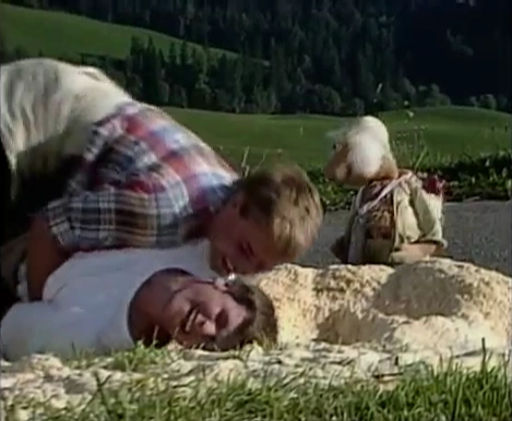 Episode 303: Boober and the Glob | Traveling Matt visits a cheese maker in the Alps and "sets free" six giant cheese wheels, making them roll downhill and the cheese maker mad. Note: This postcard has not been released in English. | |