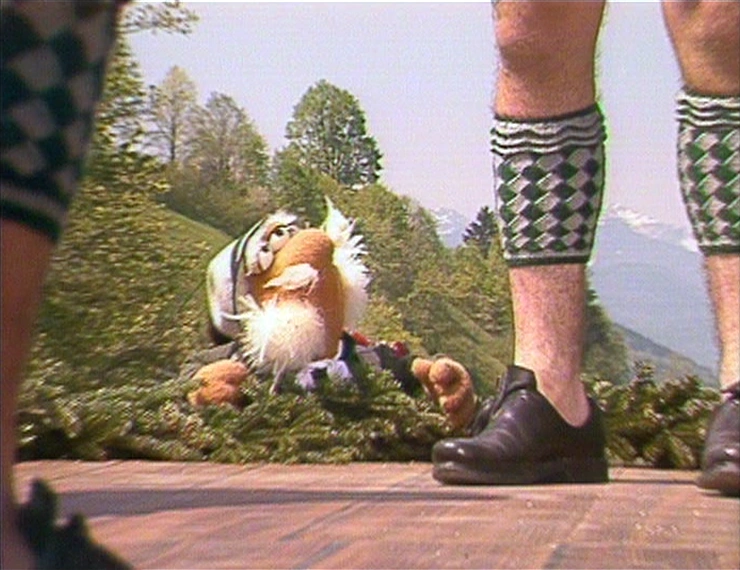 Episode 314: The Great Radish Caper | Matt encounters a traditional group of "Schuhplattler" dancers in Bavaria, and misinterprets their "odd behavior" to be countering a bug infestation, which is only confirmed by the audience's "odd swatting" (also known as applause). Note: An English version of this postcard appeared on The Jim Henson Company's YouTube channel in 2011. | |