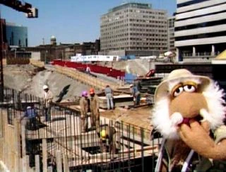 Episode 212: The Doozer Contest | Matt visits the CN Tower in Canada. He thinks it is a giant Doozer construction and attempts to eat it. After scaling the tower (by way of the elevator), he erects a flag bearing The Solemn Mark of the Fraggle. | |