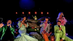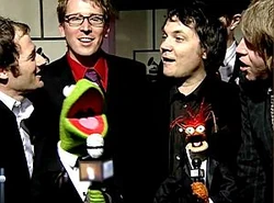 Kermit and Bret McKenzie for the opening of The Jim Henson Retrospectacle Live in Concert; then reprised for the finale by Kermit, McKenzie, Walter, Miss Piggy, Fozzie Bear, Sam the Eagle, and Lew Zealand (2018). |