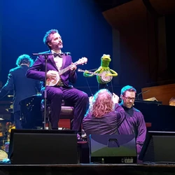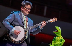 Kermit with Lucas Ross on banjo and Craig Kier on piano at UMD College of Arts and Humanities' Dean's Lecture Series. (2024) |