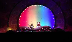 - Muppets Inside — Rizzo the Rat suggested about making up a song about rainbows connectors but Kermit doesn't like Rizzo's idea because he's stealing his song.