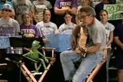 Kermit on Extreme Makeover: Home Edition with makeover team member Paul DiMeo on guitar (2006). |