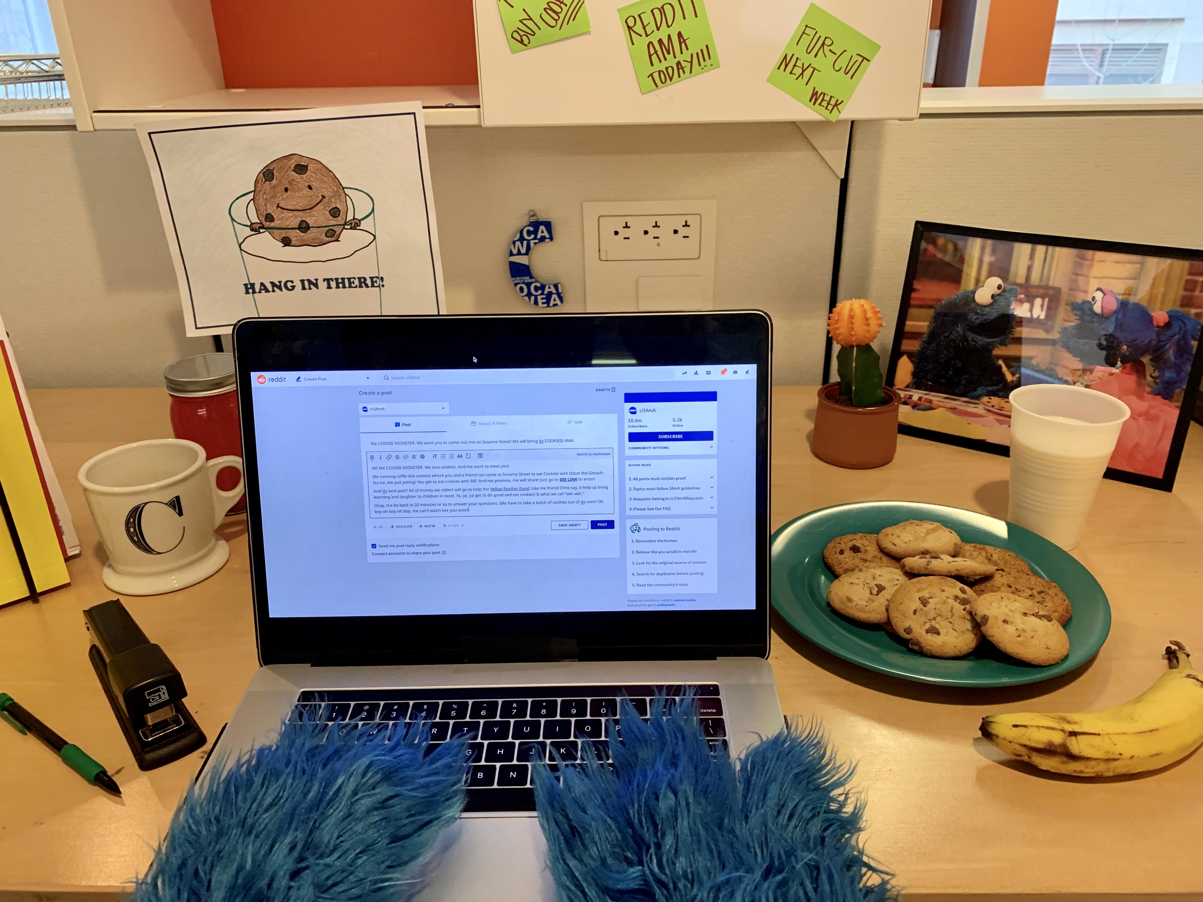 Cookie Monster announced his AMA on Twitter moments before the event began.