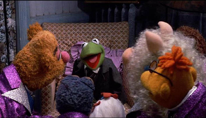 When he wakes up, Kermit finally remembers his true identity but is surprised to discover that he is backstage on the opening night of his musical Manhattan Melodies. Although he at first insists that show is still missing something and not ready for Broadway, when he sees the myriad Muppets that Fozzie, Gonzo, Scooter, Rowlf, and The Electric Mayhem have brought back to New York City, he realizes that what Manhattan Melodies has been missing all along was "more frogs and dogs and bears and chickens and whatevers."