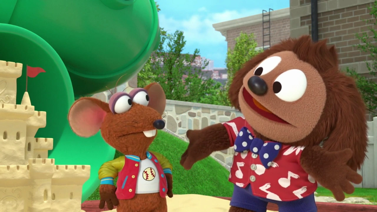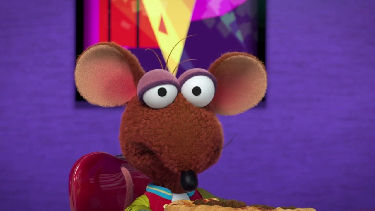 A younger version of Rizzo the Rat is seen in Disney Junior's Muppet Babies. He first appeared in the episode "How Kermit Got His Groove," where it's revealed he lived behind a hole in the wall. Making a mess in the playroom, he informs the babies that he's decided to move in, challenging Baby Kermit to a dance-off to determine whose playroom it is. After Kermit wins the dance-off, Rizzo sadly admits defeat and plans to leave them alone, but Kermit informs him that he's welcome to come over and play anytime.