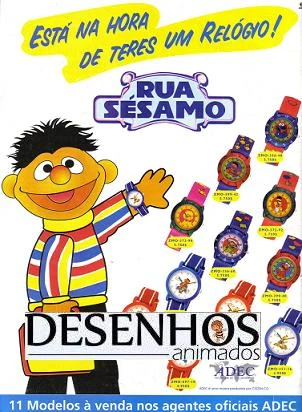 Adec produced a line of Sesame Street watches in 1997; the set was also sold in Portugal, for Rua Sésamo. The set included watches featuring Bert, Ernie, Elmo, Cookie Monster and Oscar the Grouch.