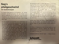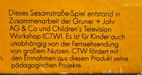 Sag's Pfeilgeschwind (Say It Like an Arrow) is a Sesamstrasse game produced in the 1970s by Schmidt and Gruner+Jahr. The game tiles feature illustrations of Ernie, Bert, Big Bird, Cookie Monster, Grover, Sherlock Hemlock, and Roosevelt Franklin.
