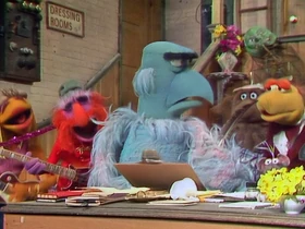 Floyd and Janice sing "Sam's Song" for the UK Spot on episode 418 of The Muppet Show. They are trying to annoy Sam the Eagle, who is busy writing a letter to put a stop to all the weirdness. Beauregard joins them on harmonica, Nigel whistles, and Rizzo dances.