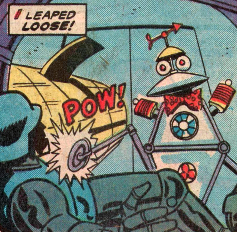 Sam appeared in Marvel Comics as "Sam the Sesame Street Robot" in Spidey Super Stories #31 for a story called "Star Jaws,"[7] a Star Wars parody in which Sam teams up with Spider-Man and other characters to save Earth. As the only robot on the side of the "good guys," Sam's character is roughly a hybrid of the C-3PO and R2-D2 characters in Star Wars. The Star Jaws variant is smaller than the full-body Muppet character and is similar in size to R2D2. Unlike the original Sam the Robot, the Star Jaws Sam is not a predominantly comic character—he is physically agile and participates effectively in fight scenes, using his two front legs to kick his adversaries and jump to safety.