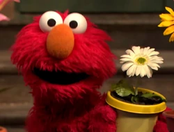 Elmo's head is redone, making his head more oval-shaped. His nose has also been made a warmer shade of orange. |