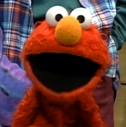 This variant of Elmo was used in tandem with the previous puppet for a few years. In comparison to the main Elmo puppet of the time, he has a more pronounced nose, a wider mouth, a more round head, and his fur appears scruffier, mostly on his upper lip. |