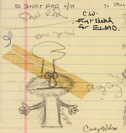 The first sketches of Elmo by Caroly Wilcox (cited in Imagination Illustrated as 1979), show that Elmo was originally intended to have a wider head. |