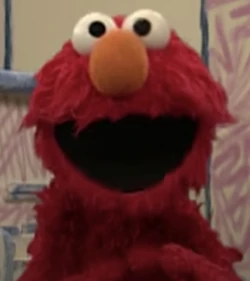 Elmo's head is narrower and his nose is a bit wider. He retains his thick fur, albeit with less on the sides of his face. |