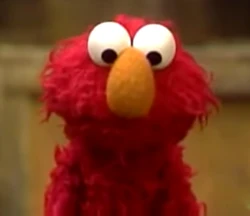 The original Elmo debuts in Episode 1405, as an unidentified, generic monster puppet with no consistent performer. Though the design of the character was established from the beginning, some differences from the current Elmo puppet include a darker orange nose, bulkier lower jaw, and smaller pupils, positioned in a way that often make the character appear cross-eyed. |