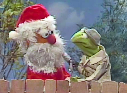 In another News Flash sketch, Kermit the Frog encounters a Fat Blue Santa (Kevin Clash), hoping to find out how he gets down the chimney. |