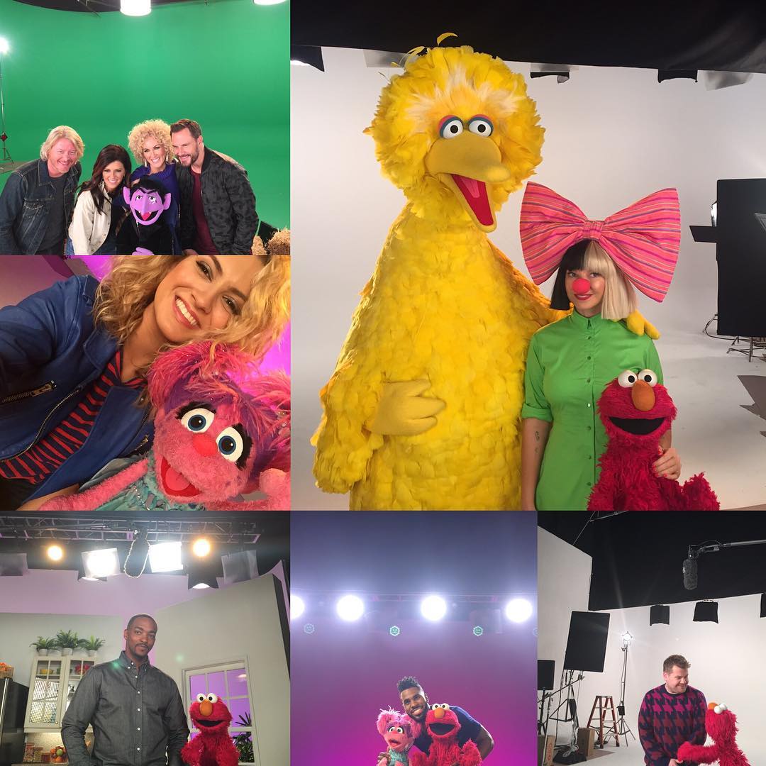 Among the segments filmed were clips of various celebrities (including Corden, Derulo, Kelly, Mackie, and Sia) singing the classic Sesame Street song "Rubber Duckie" with Ernie and his rubber duck on a set filled with floating bubbles.[4]