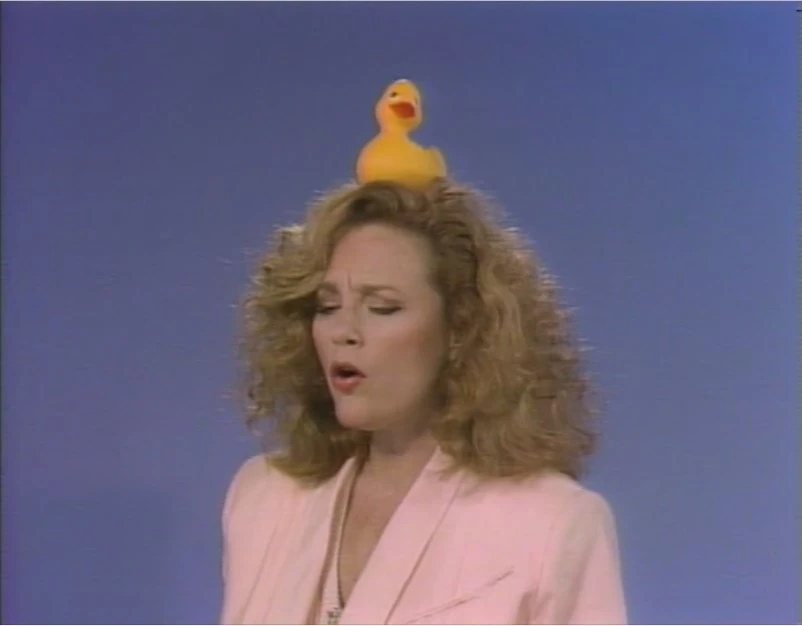 "Put Down the Duckie" reprise as the end credits roll, featuring appearances by Martina Navratilova, Andrea Martin, Jane Curtin, Gladys Knight and the Pips, Ralph Nader, the Sesame Street cast, Robert MacNeil, Barbara Walters, Paul Simon, and Phil Donahue. |