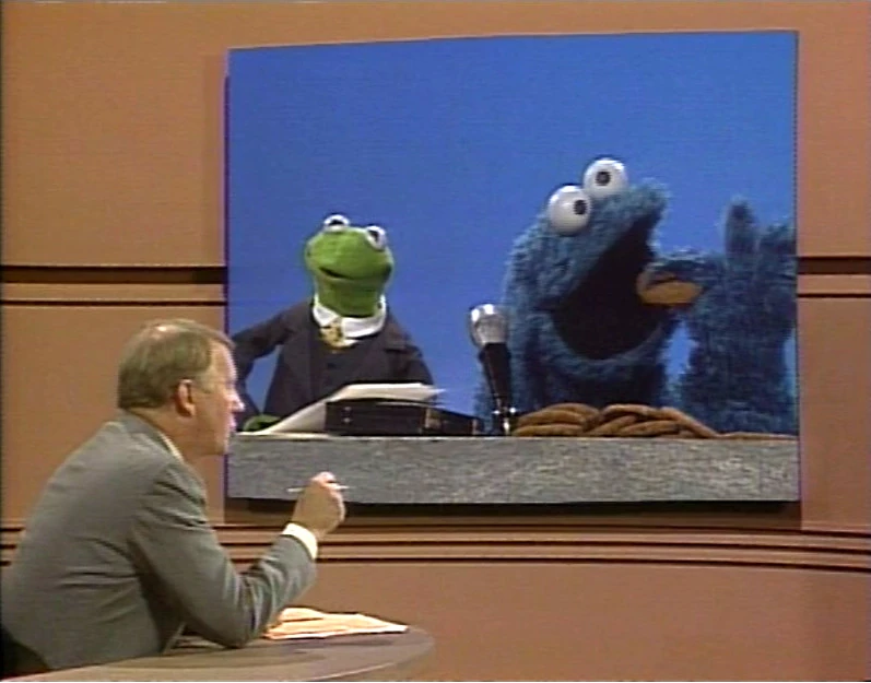 A Sesame Street Special Report with Robert MacNeil. Cookie Monster has been accused of stealing Susan's and Gordon's cookies in a scandal called the Missing Cookies Affair, or Cookiegate. Kermit acts as Cookie Monster's lawyer during Robert MacNeil's interview.