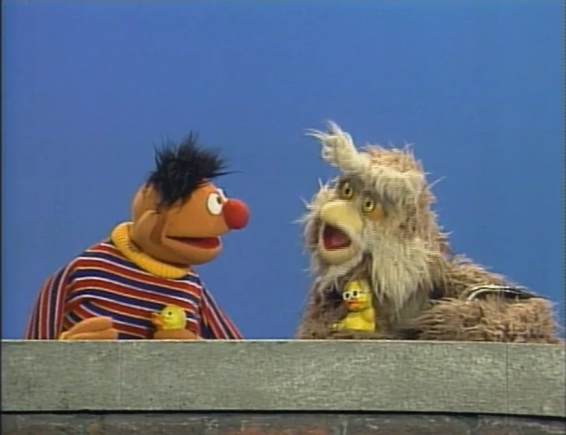 Hoots tells Ernie that he has a problem. Every time that Hoots squeaks "his" Rubber Duckie, it makes a weird sound. After demonstrating Ernie tells Hoots, "You gotta put down the saxophone if you wanna squeak your duckie!" |