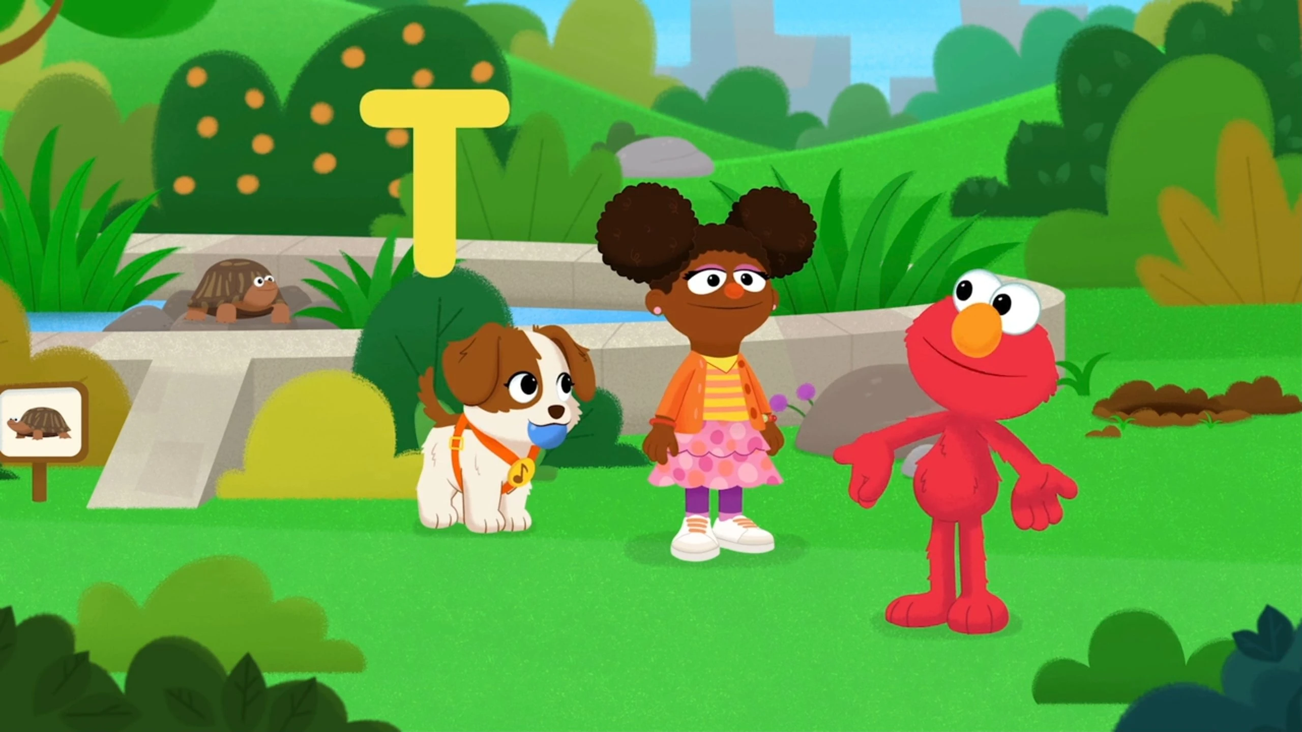Elmo, Tango, and Gabrielle find animals with the same starting letter as their names. |