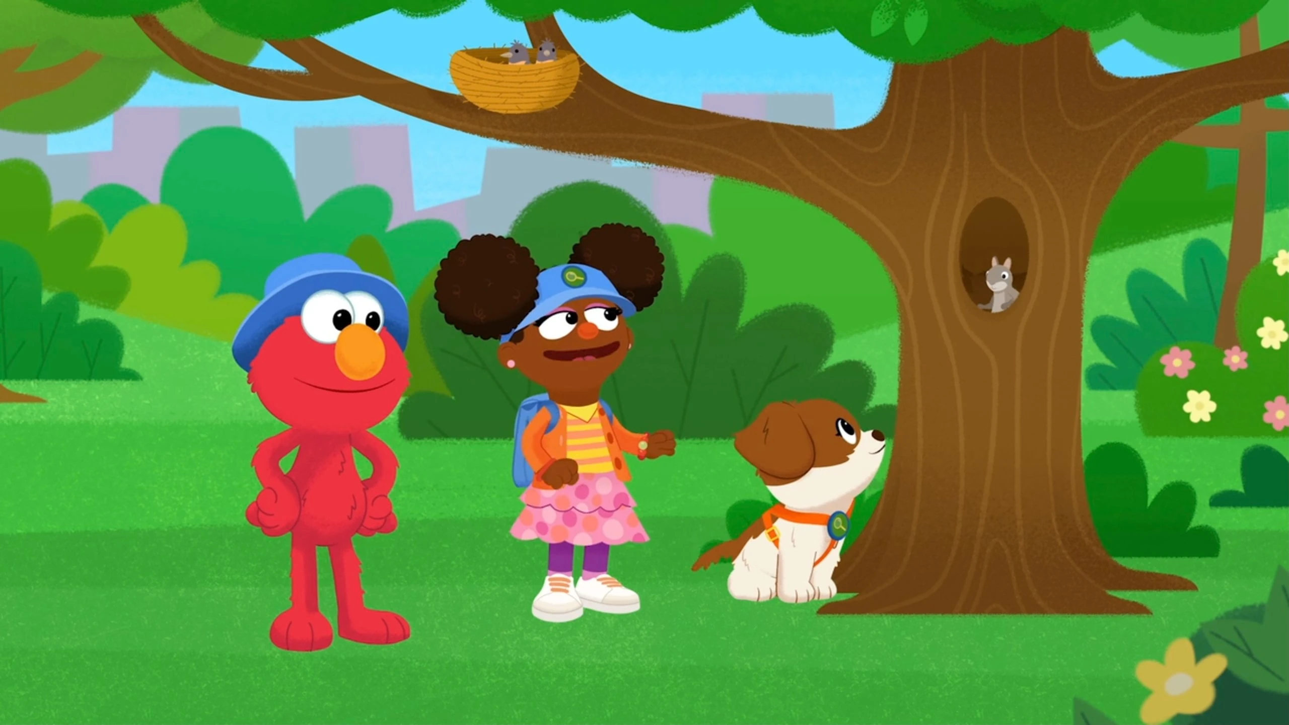 Elmo, Tango, and Gabrielle discover how to play in nature. |