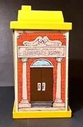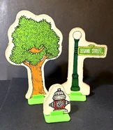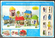 Sesame Street Neighborhood is a 1977 Sesame Street building set made by Milton Bradley under the Playskool label. The stiff cardboard set includes five buildings on Sesame Street, including 123 Sesame Street, Hooper's Store, Roosevelt Franklin Elementary School and a bakery.
