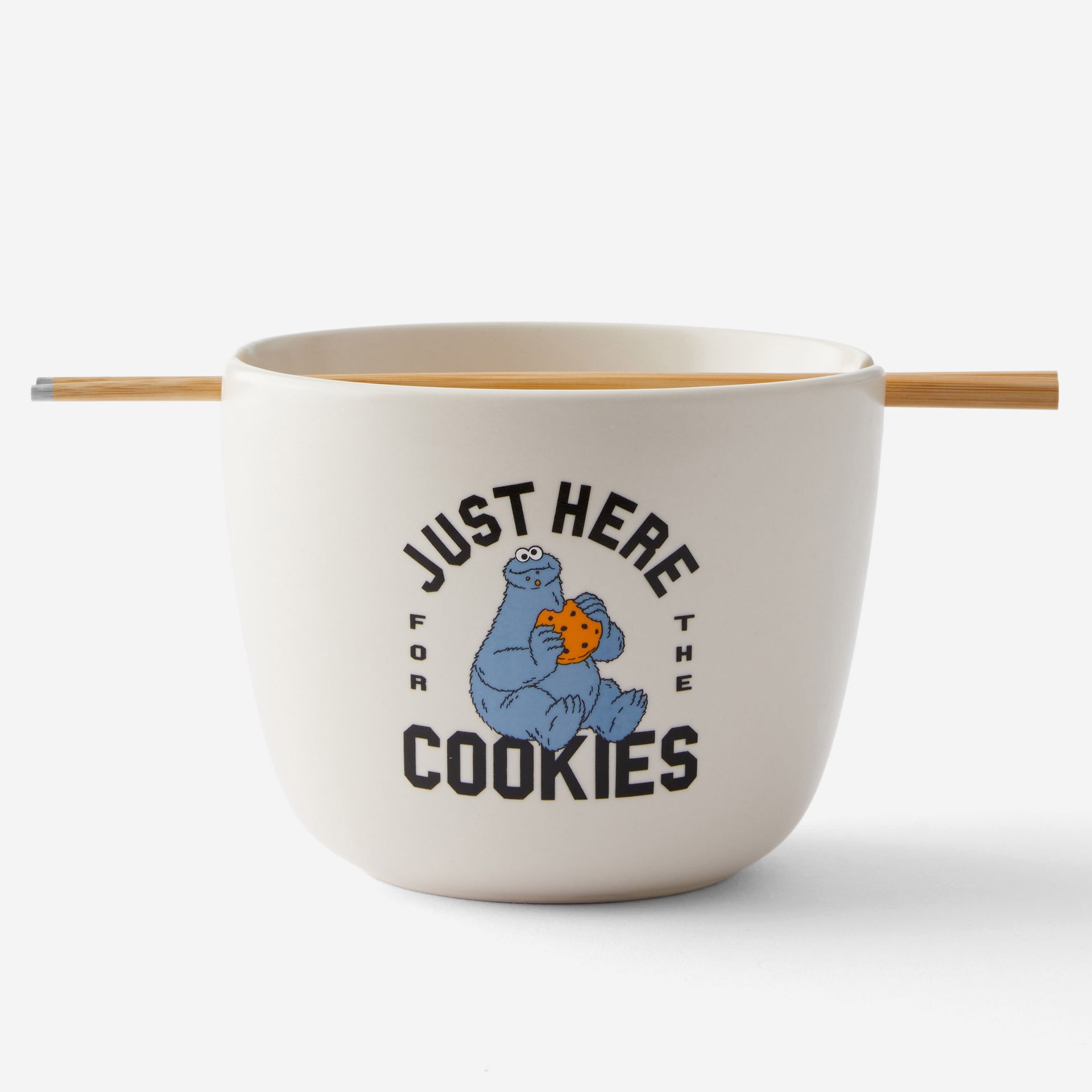 Australian company Typo produced a noodle bowl featuring Cookie Monster and the text "Just here for the cookies."