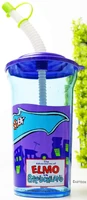 Zak Designs has produced a variety of Sesame Street cups, bottles, and tumblers, including one glass that comes with a companion Elmo figure holder.