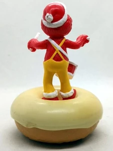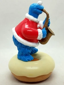In 2003, the Japanese branch of donut shop Mister Donut produced three Christmas-themed Sesame Street figures. The figures of Big Bird, Cookie Monster, and Elmo are each standing atop a donut. A Zoe figure was also released later.