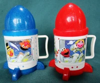 Peter Pan Industries made a set of Sesame Street mugs shaped like rocket ships in the 1990s, featuring Ernie and Bert, Elmo and Prairie Dawn, and Big Bird and Grover.