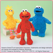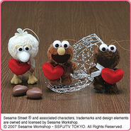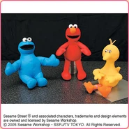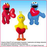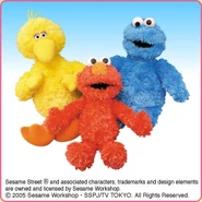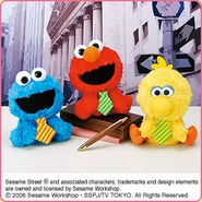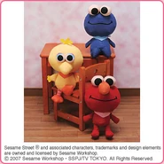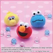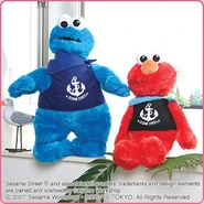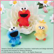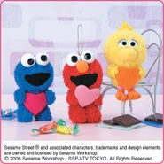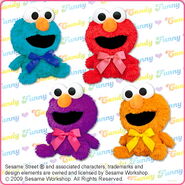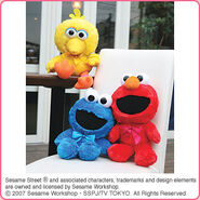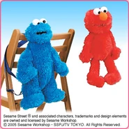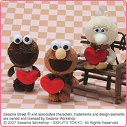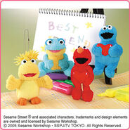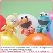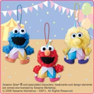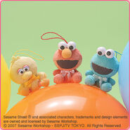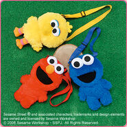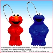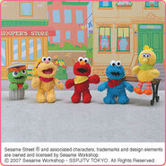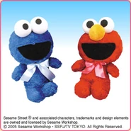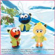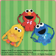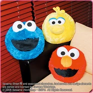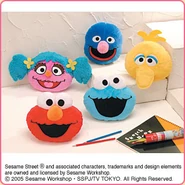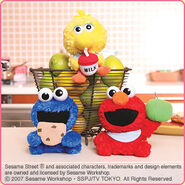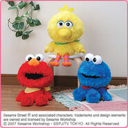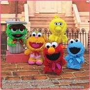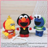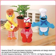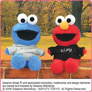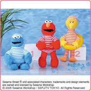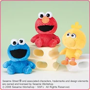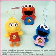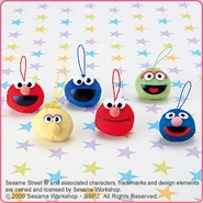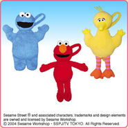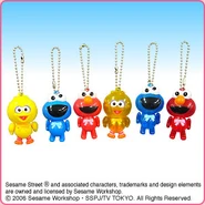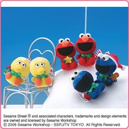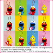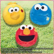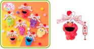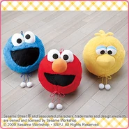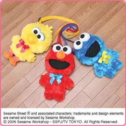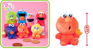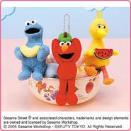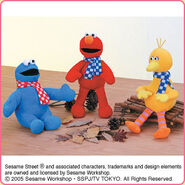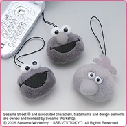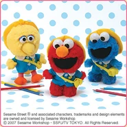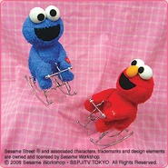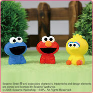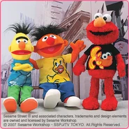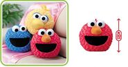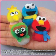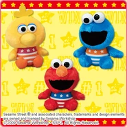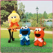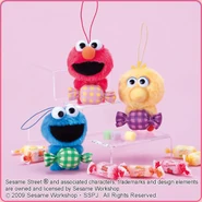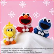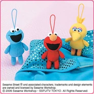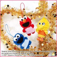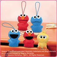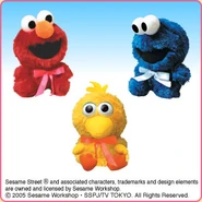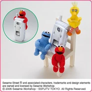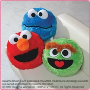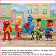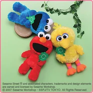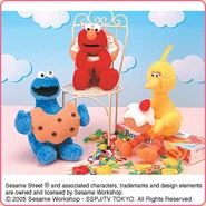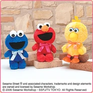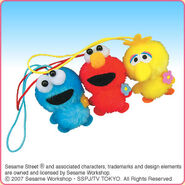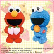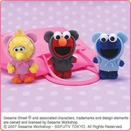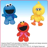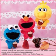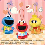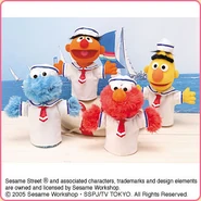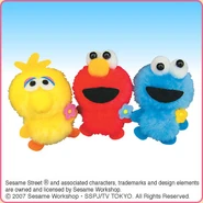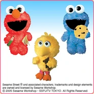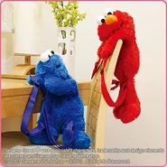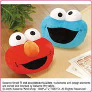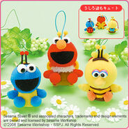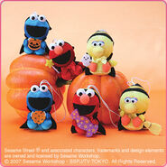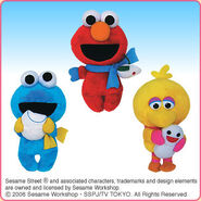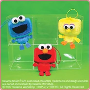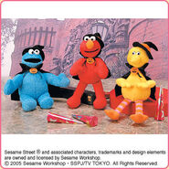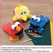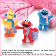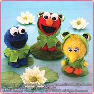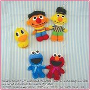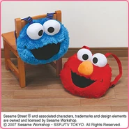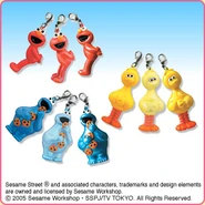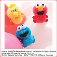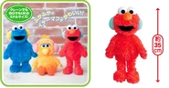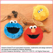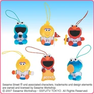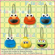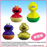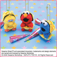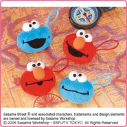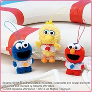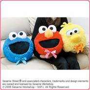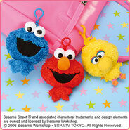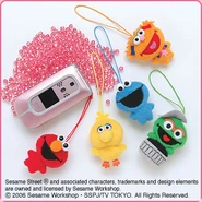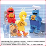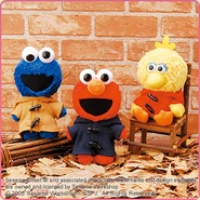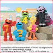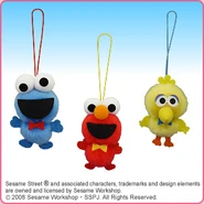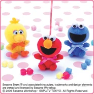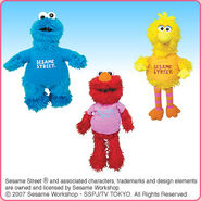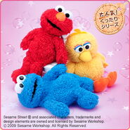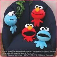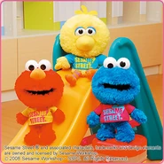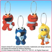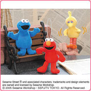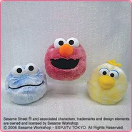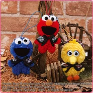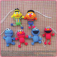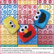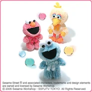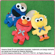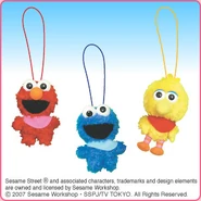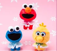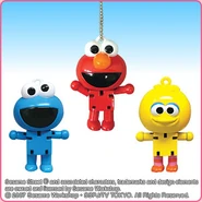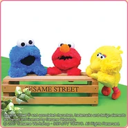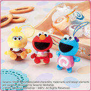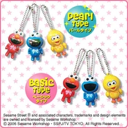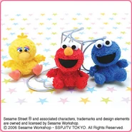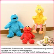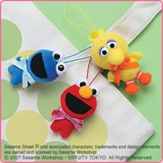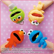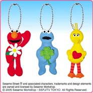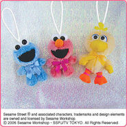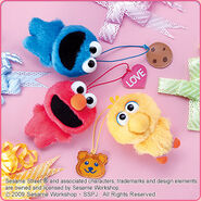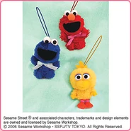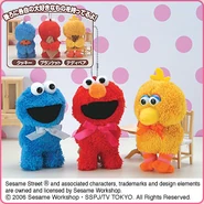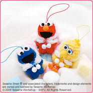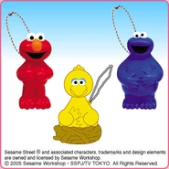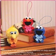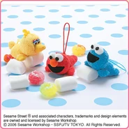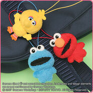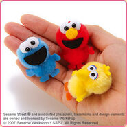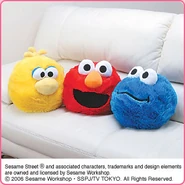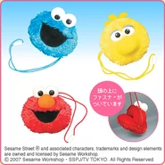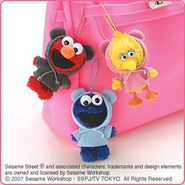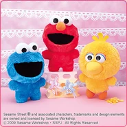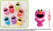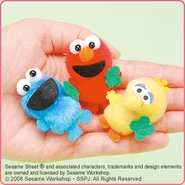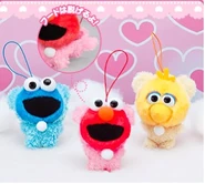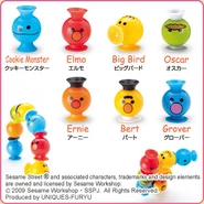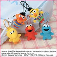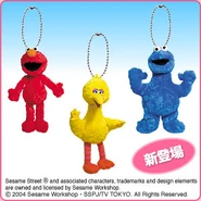 The Japanese toy company FuRyu/Chara Hiroba produces Sesame Street prizes for "UFO catchers", game machines that are popular in Japanese arcades. FuRyu's Chara Hiroba line makes several Sesame prizes every month -- including plush toys, pillows, keychains and cell phone "mascots". Most of the toys feature Big Bird , Elmo and Cookie Monster , with occasional appearances by Ernie , Bert , Oscar the Grouch , Grover , Count von Count and the characters from the Japanese Sesame Street -- Teena , Mojabo , Pierre and Arthur .
