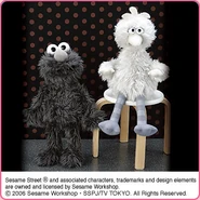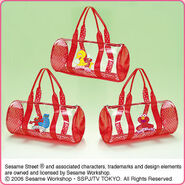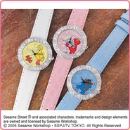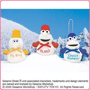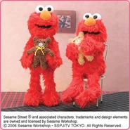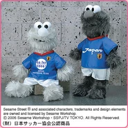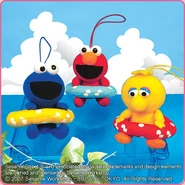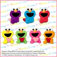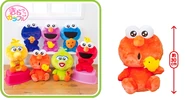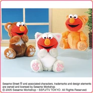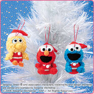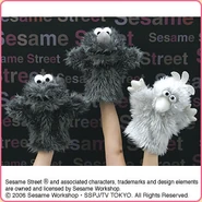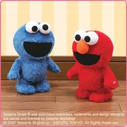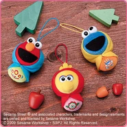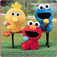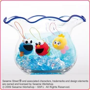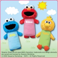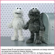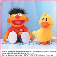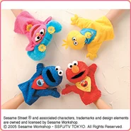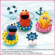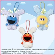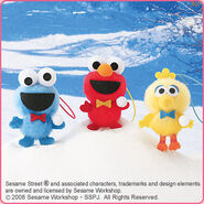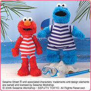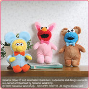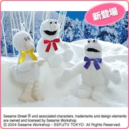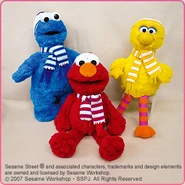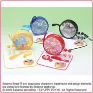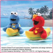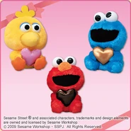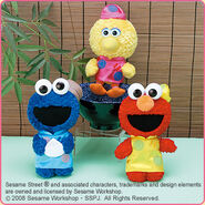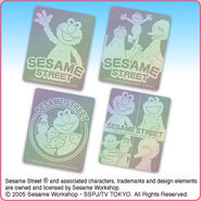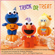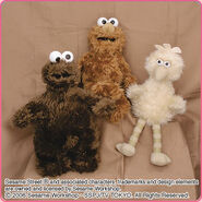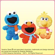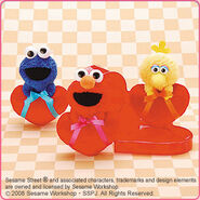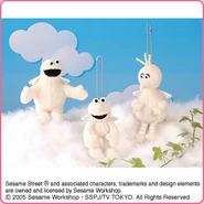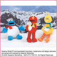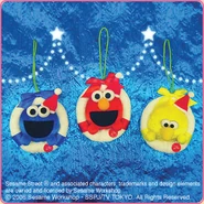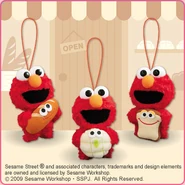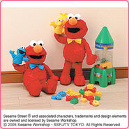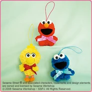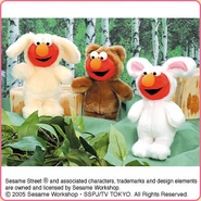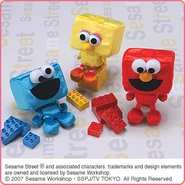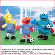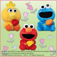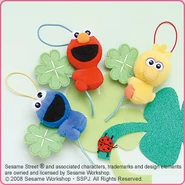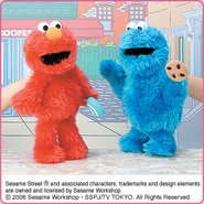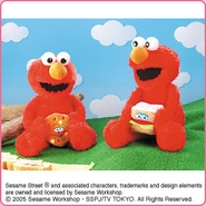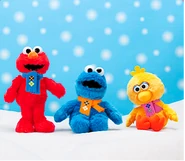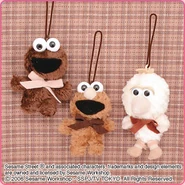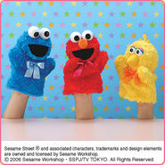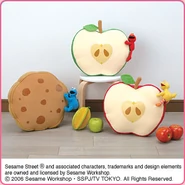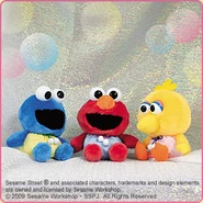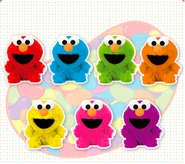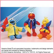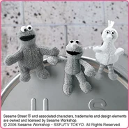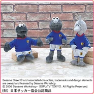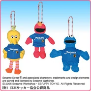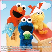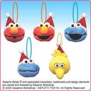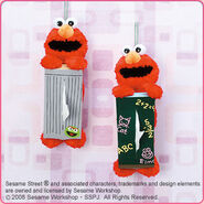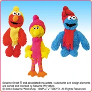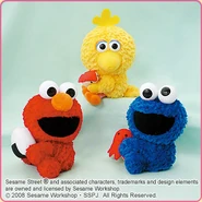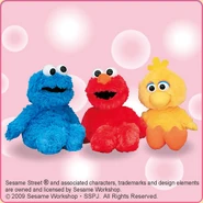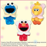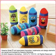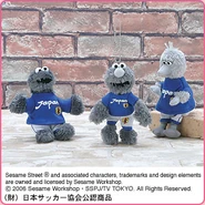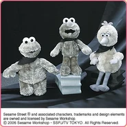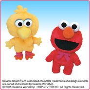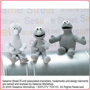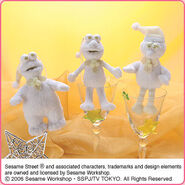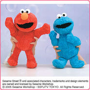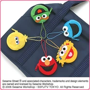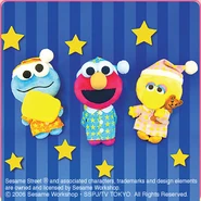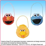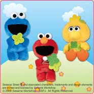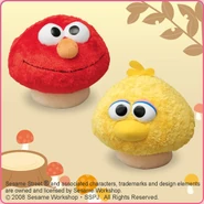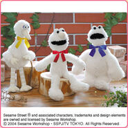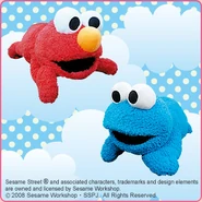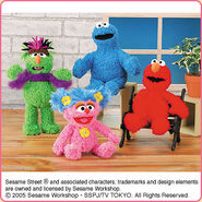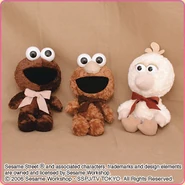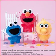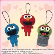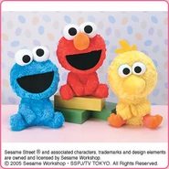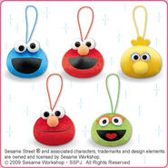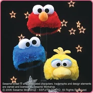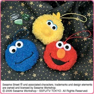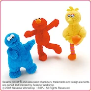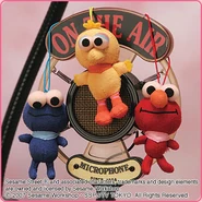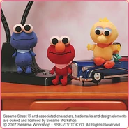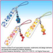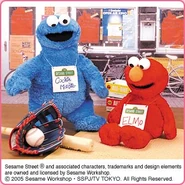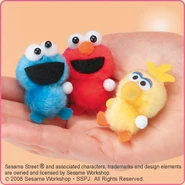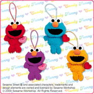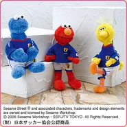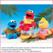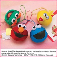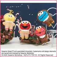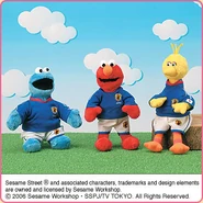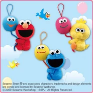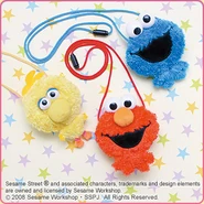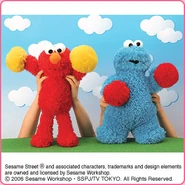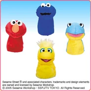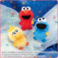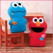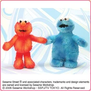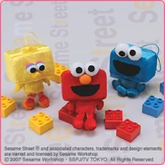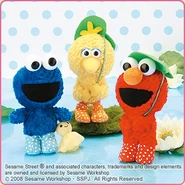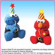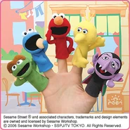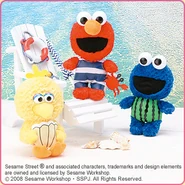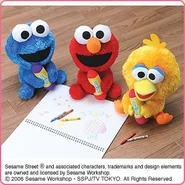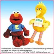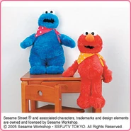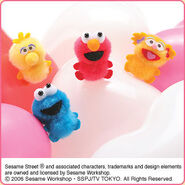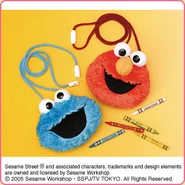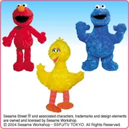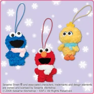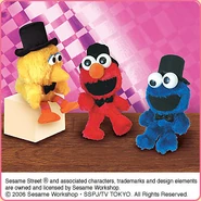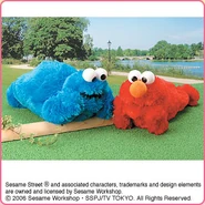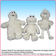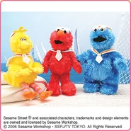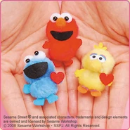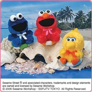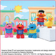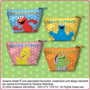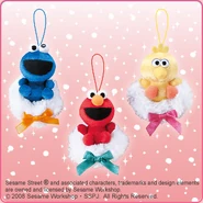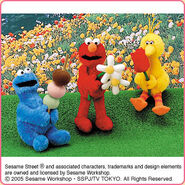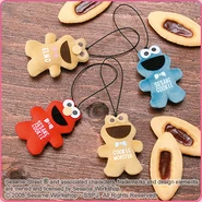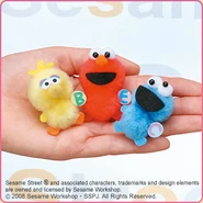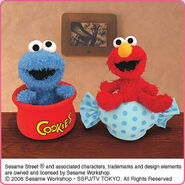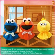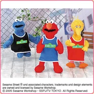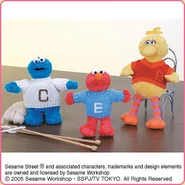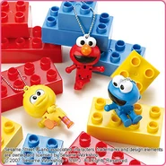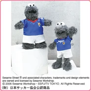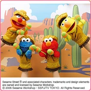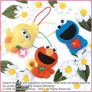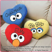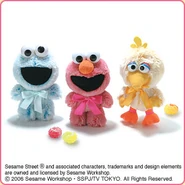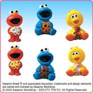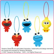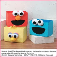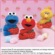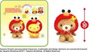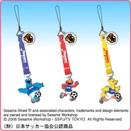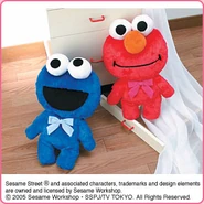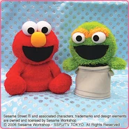 The Japanese toy company FuRyu/Chara Hiroba produces Sesame Street prizes for "UFO catchers", game machines that are popular in Japanese arcades. FuRyu's Chara Hiroba line makes several Sesame prizes every month -- including plush toys, pillows, keychains and cell phone "mascots". Most of the toys feature Big Bird , Elmo and Cookie Monster , with occasional appearances by Ernie , Bert , Oscar the Grouch , Grover , Count von Count and the characters from the Japanese Sesame Street -- Teena , Mojabo , Pierre and Arthur .