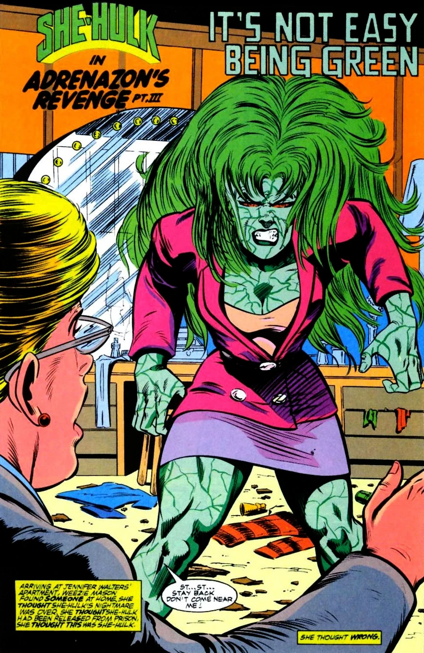 - The sub-title of the She-Hulk story "Adrenazon's Revenge pt. III" from Marvel Comics Presents v1 #125 (April 1993) is called "It's Not Easy Being Green" on the story's splash page.
