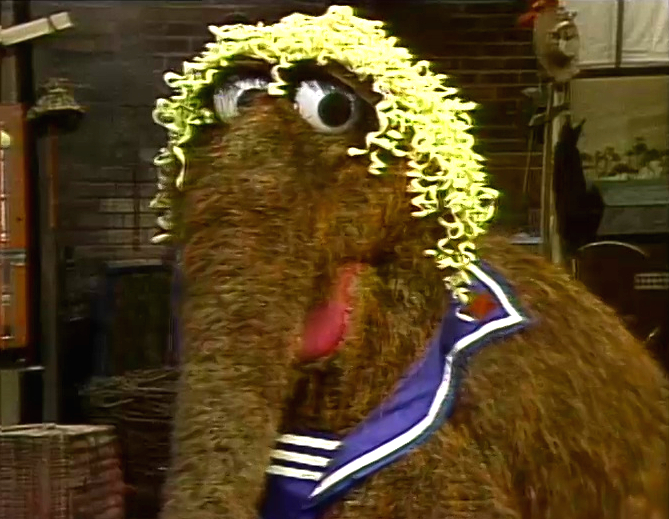 - Big Bird admires Snuffy's Shirley Temple wig as Snuffy pretends to be Goldilocks in Episode 1289.