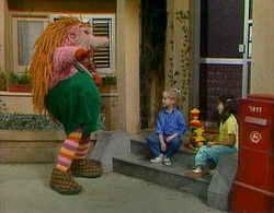 As the grouches continue to make noise, Sarah continues to wander around looking for the studio.